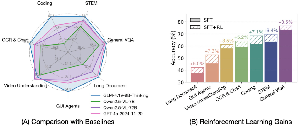 GLM-4.1V is a vision-language model, providing a powerful, compact multimodal model designed for reasoning and perception across images, text, and documents. The 9-billion-parameter variant (GLM-4.1V-9B-Thinking) is built on the GLM-4-9B foundation and enhanced through a specialized training paradigm using Reinforcement Learning with Curriculum Sampling (RLCS). It supports a 64k-token context window and accepts high-resolution inputs (up to 4K images, any aspect ratio), enabling it to handle complex tasks such as optical character recognition, image captioning, chart and document parsing, video and scene understanding, GUI-agent workflows (e.g., interpreting screenshots, recognizing UI elements), and general vision-language reasoning. In benchmark evaluations at the 10 B-parameter scale, GLM-4.1V-9B-Thinking achieved top performance on 23 of 28 tasks.