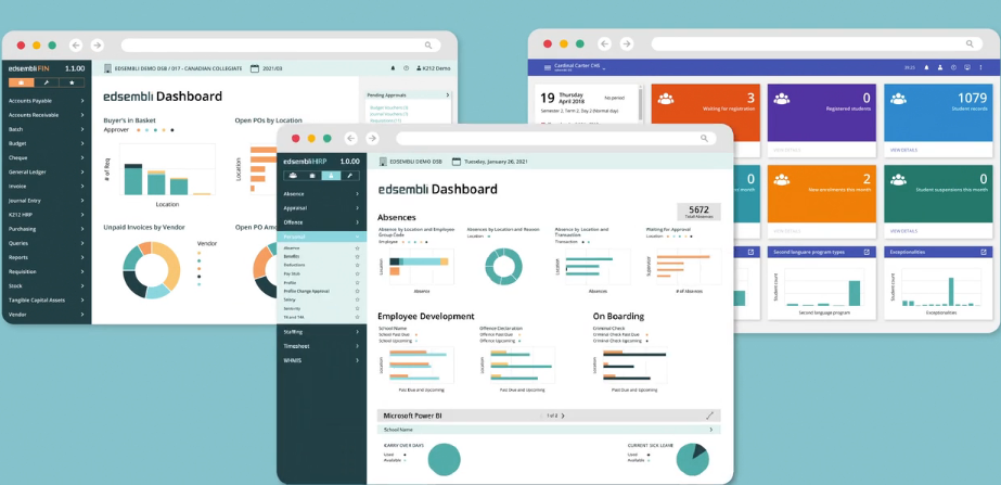 Edsembli empowers school boards and individual schools to rethink existing processes, reallocate resources to the classroom, and reimagine the student learning experience. Our integrated cloud ecosystem (HR & Payroll, Finance and Student Information System) enhances data connectivity and visibility to unify operations, streamline decision making, improve internal processes, and create exceptional user experiences. We understand the education sectors-specific challenges faced by administrators, educators, and students. Unify every department and team with a dynamic cloud-based platform that was inspired by school districts and purpose-built for education. Enhance data connectivity across education operations, business operations and education delivery departments to improve productivity. Minimize the need for third-party platforms and integrations with a centralized platform that gives you instant access to relevant information.