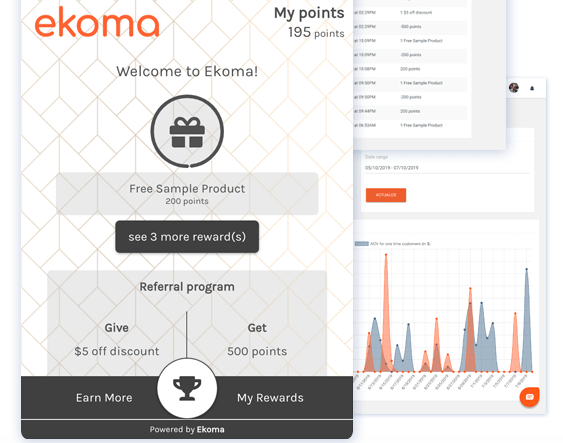 With Ekoma, you can grow your sales and develop your community using the loyalty, referral and VIP programs. The Incentive Marketing Platform. Repeat customers refer 50% more people who are 4 times more likely to place an order because they trust your brand. Additionally, referred customers are more loyal (higher NPS), spend more money (higher LTV and AOV), and refer more customers themselves. Market more effectively to your existing customers that are more likely to purchase again. Repeat customers refer 50% more people, and referred customers are 4 times more likely to place an order because they can trust your brand. Award your customers with points and rewards both before and after purchase. Incentivize them to come back and redeem their points and rewards. Ekoma provides two complementary modules to create a deep customer experience towards loyalty and advocacy.