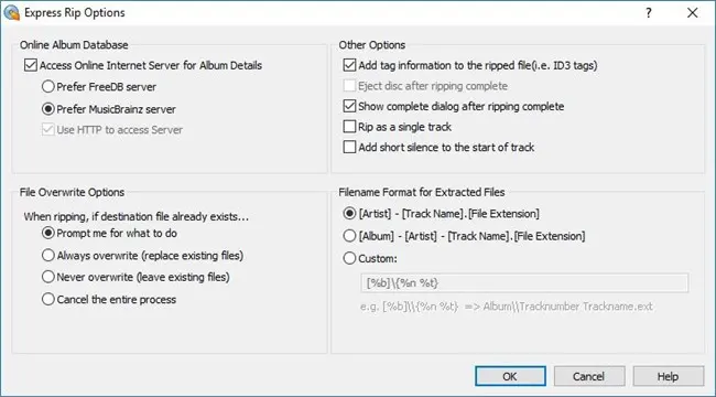 Save track information or 'tags' to MP3 files including title, artist, album and custom metadata information. Correct or adjust the audio volume of ripped tracks as they are extracted.