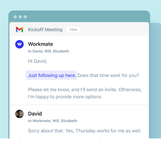 Workmate is an AI-driven calendar and scheduling assistant that works across your email and calendar tools to manage meeting organization, clear scheduling conflicts, and proactively follow up without back-and-forth coordination. By simply CCing your Workmate on scheduling emails or connecting your apps, the AI handles availability sharing, conflict resolution, rescheduling, and confirmation messages with contacts over email, text, or Slack while offering customization for how the assistant appears and communicates in your organization. It supports 24/7 responsiveness and can be tailored with a domain-based email address, free-form scheduling instructions, and automation preferences so the assistant acts in your voice, and combines proprietary AI with optional human verification to improve accuracy and reliability in complex scenarios.