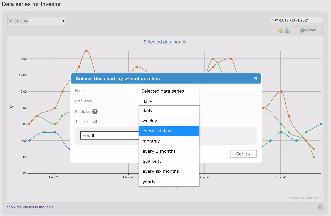 Energy savings and waste reduction in your hands from anywhere. The app significantly simplifies regular energy management-related tasks. Thanks to Enectiva, you will have all your data nicely arranged in one place. This allows you to monitor the consumption of all energies as well as data collected by the sensors. Energy monitoring can be then further divided up by application. In case of electricity, this includes the consumption of the air conditioning system, cooling, lighting and production. All displayed energy data can be viewed in technical and monetary units. Monitor the development of energy consumption during the year, days, hours or minutes, keeping constant track of your current consumption. You can also view any chart in monetary terms. You can immediately see how much leaking water or overheated space costs you.