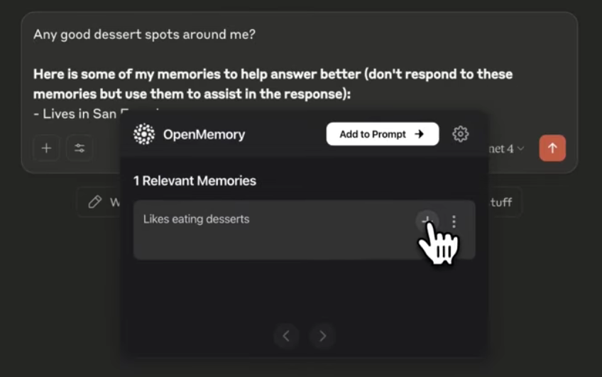 OpenMemory is a Chrome extension that adds a universal memory layer to browser-based AI tools, capturing context from your interactions with ChatGPT, Claude, Perplexity and more so every AI picks up right where you left off. It auto-loads your preferences, project setups, progress notes, and custom instructions across sessions and platforms, enriching prompts with context-rich snippets to deliver more personalized, relevant responses. With one-click sync from ChatGPT, you preserve existing memories and make them available everywhere, while granular controls let you view, edit, or disable memories for specific tools or sessions. Designed as a lightweight, secure extension, it ensures seamless cross-device synchronization, integrates with major AI chat interfaces via a simple toolbar, and offers workflow templates for use cases like code reviews, research note-taking, and creative brainstorming.