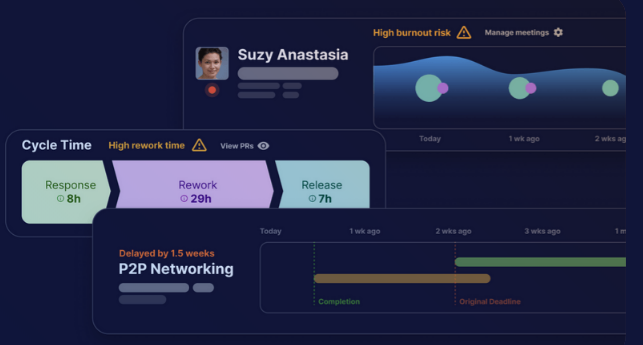 Middleware frees engineering managers from repetitive follow-ups to ensure smooth product delivery, and identification of workflow bottlenecks so they can remove any hiccups for their team. Middleware sits on top of the team's existing tools like GitHub, Calendar, and Jira and provides managers actionable insights to run their team efficiently and prevent their engineers from burning out. Single view which highlights areas to act on whether it is a delivery issue or a people issue. We bring insights using your PRs to find out which reviewer is the bottleneck or whether the team is just waiting long for reviews or reworking every code change. Spot if your team is too stretched on calls and deliveries to prevent burnout or boredom. Middleware 1:1s give you a look at the developer's performance and allow you to keep track of their growth areas and goals, hence helping you to grow your engineer as best you can.