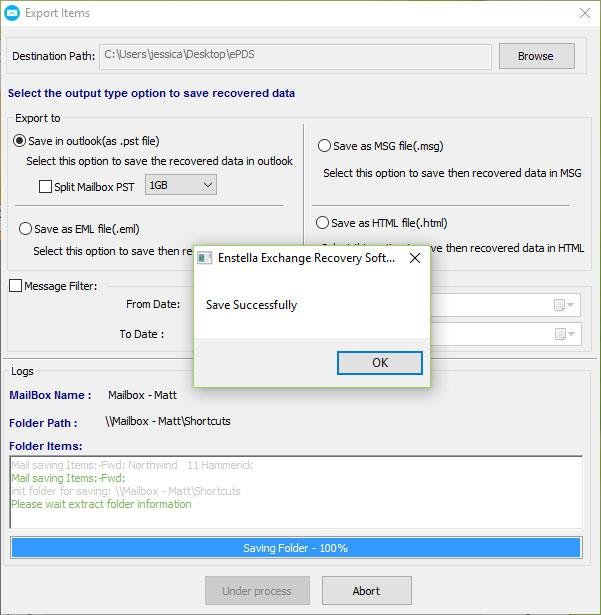Enstella Exchange Recovery Software is successful solutions to recover highly corrupt mailboxes from Exchange EDB files. With this software you can frequently access damaged EDB file with every single email including attachments. Exchange Recovery Software use deep scanning process to extracts all emails and then after allows users to Recover Exchange EDB to PST, EML, MSG and HTML formats. This software also capable to recover EDB file from dis-mounted condition as well as recovers priv1.edb and pub1.edb files. You can also recover selected emails of two dissimilar dates using Message filtering option. EDB to PST Recovery gives you smooth recovery with all EDB file versions from 5.0 to 2016.