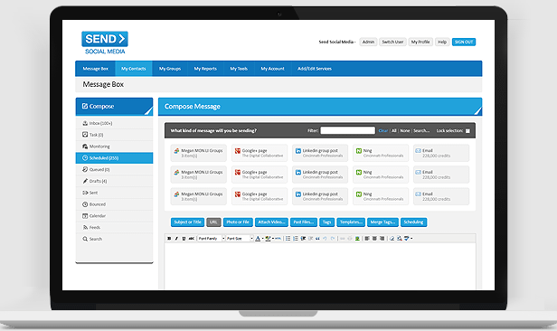 Drive sales to your business with constant branding via Send Social Media’s powerful tools! Automate your entire marketing plan via Twitter, Email, Blog posts, SMS text and much more. Read and respond to what people are saying about your brand across 30+ social networks. Analyze everything including clicks, referrers, shares, comments, views & more with Social Media Analytics dashboard and create detailed custom reports. Join the thousands of franchisors and local businesses that use Send Social Media for Social Media Management. We offer a platform for engaging with customers, measuring results and monitoring your brand across 30+ social networks all at once.