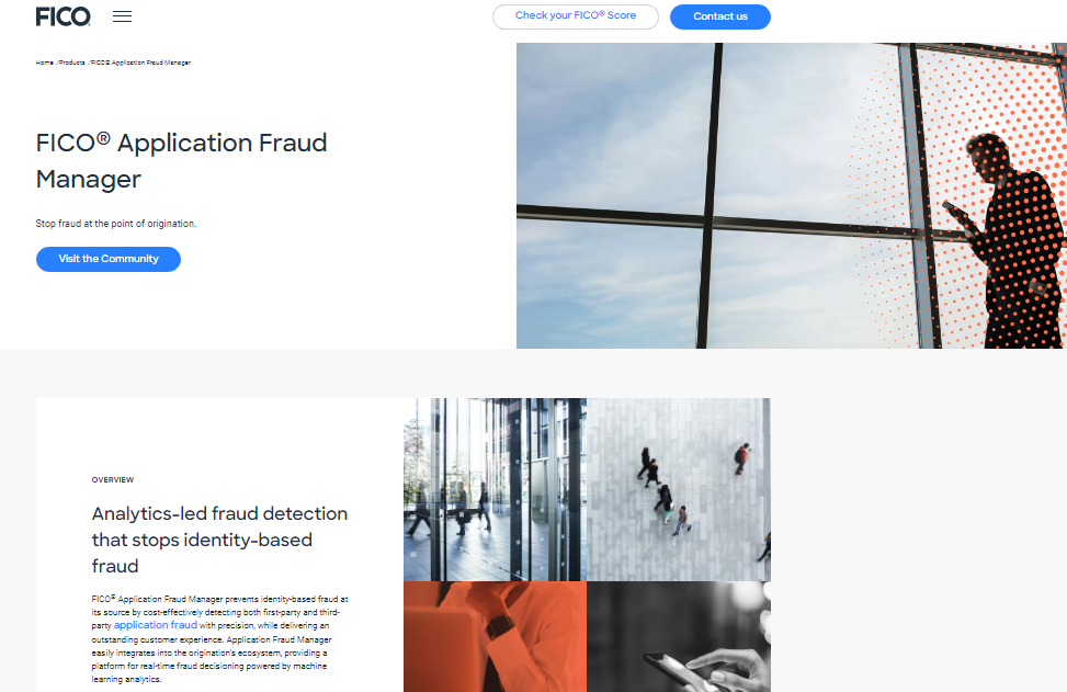 Stop fraud at the point of origination. FICO® Application Fraud Manager prevents identity-based fraud at its source by cost-effectively detecting both first-party and third-party application fraud with precision while delivering an outstanding customer experience. Application Fraud Manager easily integrates into the origination's ecosystem, providing a platform for real-time fraud decisions powered by machine learning analytics. Analytics, data orchestration, case management and detection strategies unite to accurately detect and prevent more fraud. Seamlessly analyze hundreds of behavioral characteristics to identify patterns that are inconsistent or aberrant and indicate fraud. Make better-informed decisions by easily by supplementing originations data with information from internal or third-party sources. Pre-integration with originations systems including FICO Origination Manager enables fast adoption and straight-through-processing of applications.