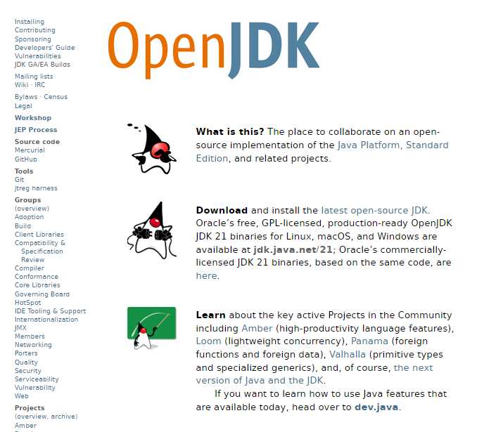 The place to collaborate on an open-source implementation of the Java platform, standard edition, and related projects. Download and install the latest open-source JDK. Oracle’s free, GPL-licensed, production-ready OpenJDK JDK 21 binaries for Linux, macOS, and Windows are available, Oracle’s commercially-licensed JDK 21 binaries, based on the same code, are available as well. Browse the code on the web, clone a repository to make a local copy, and contribute a patch to fix a bug, enhance an existing component, or define a new feature. OpenJDK provides source code that developers can use to build their binaries. Consequently, users are responsible for compiling the code and generating the Java runtime tailored to their specific platform. The JDK is a complex software project. Building it requires a certain amount of technical expertise, a fair number of dependencies on external software, and reasonably powerful hardware.
