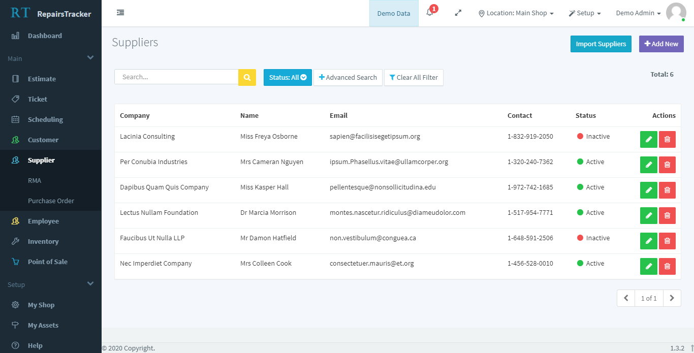 SMEs looking for a single and integrated solution to track suppliers, customers, employees, purchase orders, debtors, inventory for a single or multiple shops and provide staff and customers with updates in real time