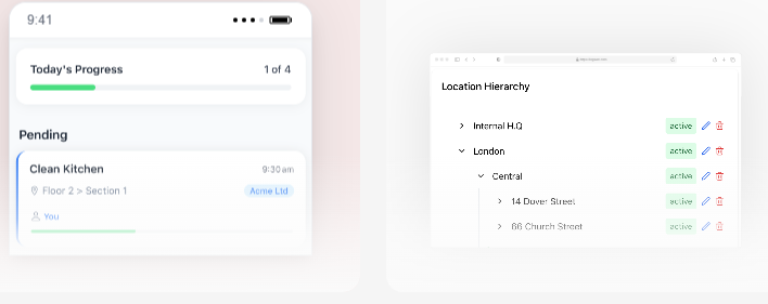 LogSure is field operations and task management solution that helps businesses track, manage, and verify work across all their sites with real-time visibility and photographic proof of completion. It lets managers organize locations hierarchically (e.g., buildings, floors, rooms), assign recurring tasks with clear instructions and photo requirements, and monitor staff progress through mobile task completion with mandatory photos and instant issue reporting, eliminating paper checklists and fragmented messaging. It includes role-based dashboards for admins, managers, staff, and clients, smart scheduling of recurring tasks, live progress reports showing completion rates and problem trends, and tools to report and resolve issues with supporting media. Mobile-first task capture ensures you see exactly when and how work was done, while centralized coordination and cloud-based dashboards give you quality control and operational oversight across distributed teams.