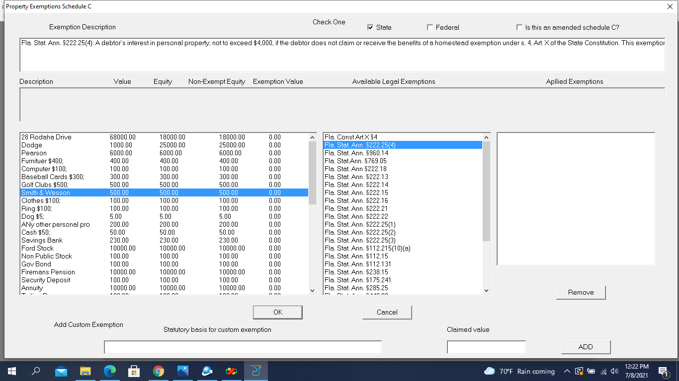 This is a bankruptcy petition preparation program. It is the collaboration of lawyers and computer engineers to create a software program that meets or exceeds the best available programs of this type. Includes artificial intelligence, 50 state exemptions, exemption picker, equity analysis on property, zip code lists, census bureau statistics and more. It contains a free version that is an invaluable resource for a one time consumer bankruptcy filer. For professionals the program has e filing capabilities which are enabled with an initial purchase of $99.00 for the paid version, and a renewal of the ECF capability yearly at a cost of $99.00 for professionals using the software as part of their practice.