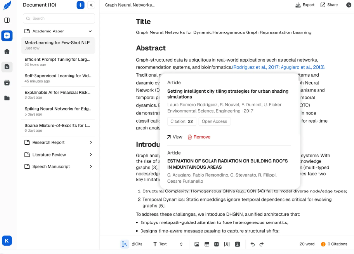 Researchers and academic seeking a tool offering accurate citation generation, structured writing support, and efficient management of references and research content