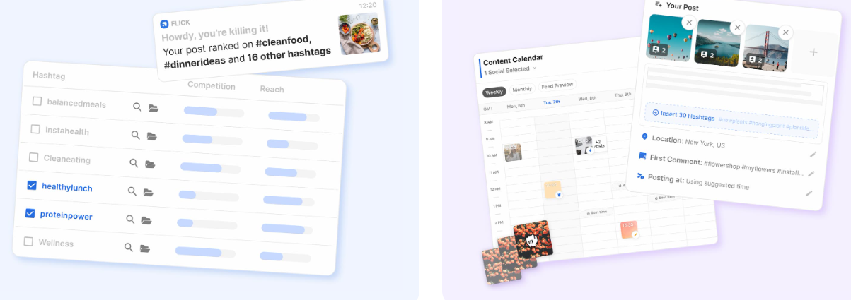 Flick is an all-in-one social media marketing platform designed to simplify and enhance your social media management. With Flick, you can schedule posts across Instagram, Facebook, TikTok, and LinkedIn using a reliable and easy-to-use scheduler. Our hashtag tools enable you to find, manage, and analyze hashtags, helping you reach more people and tailor your strategy for improved performance. Flick's analytics and reporting features provide clarity and confidence, allowing you to track what's working and make informed decisions. Additionally, our AI social media assistant, Iris, assists with strategy, planning, content creation, and more, reducing your workload and helping grow your brand. Whether you're a busy business owner, marketer, or creator, Flick offers the tools you need to get organized, consistent, and productive on social media. It's easy to lose track of what's working on Social. Get the clarity and confidence you need to make the right decisions.
