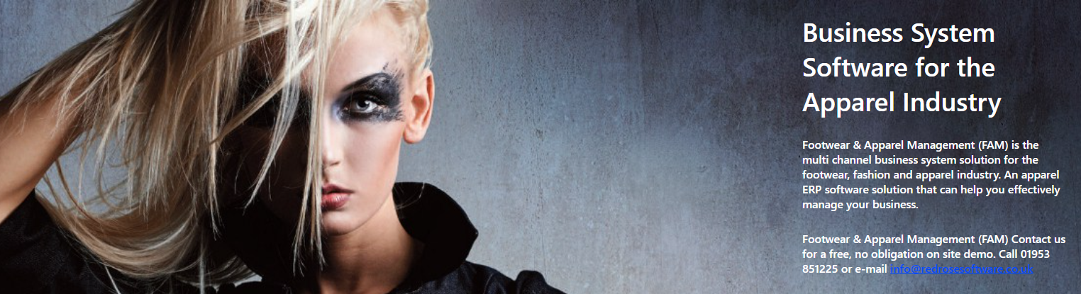 Footwear & Apparel Management (FAM) is the multi channel business system solution for the footwear, fashion and apparel industry. An apparel ERP software solution that can help you effectively manage your business. By introducing FAM into your business you will be able to efficiently control your business processes, react to your ever changing customer's requirements and manage the different areas of your business as effectively as possible. PLM, critical path, brand and royalty management, stock and forward order management are all standard FAM attributes. FAM's Retail solution for apparel combines the back office power of FAM's wholesale system with an easy to use touch screen EPOS till that delivers real time sales back to head office. This all combines to provide apparel retail and multi channel businesses with a streamlined retail solution. FAM's web site module offers you a fully integrated system for selling to your customers and communicating with your suppliers on-line.