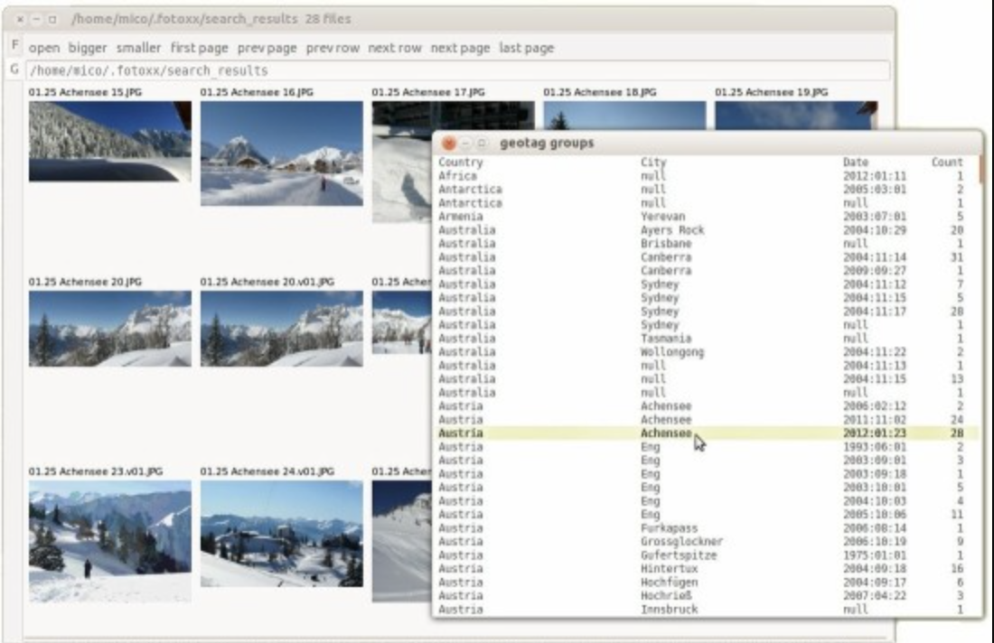 Fotoxx is a free open source Linux program for image editing and collection management. The goal is to meet the needs of serious photographers while remaining fast and easy to use. Navigate a large image collection using a thumbnail browser, click on an image to view or edit. A rich set of edit and retouch functions is available. Import RAW files and edit with deep color. Save revised images as JPEG, PNG (8/16 bits/color), or TIFF (8/16). Select an object or area within an image (freehand draw, follow edges, flood matching tones), apply edit functions, copy and paste, resize, blend, warp, etc. without using layers. Edit functions have fast feedback using the full image. Edit image metadata (tags, geotags, dates, ratings, captions). Search images using any combination of metadata and file and folder names or partial names. Click a marker on a scalable world map to view all photos from that location.