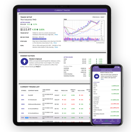 Start swing trading like a pro! With SwingTrader, you get swing trade ideas handpicked by our experts plus full trading plans. Join today and get everything you need to speed up your trading, and your profits. No need to go hunting for stocks to trade. Right on the home screen, SwingTrader shows you a hand-picked list of the best stocks to swing trade right now. Select any of SwingTrader’s curated stocks and you’ll see the trade setup, which includes an exact buy zone, a profit goal, and a stop-loss. Every handpicked stock has a full-screen interactive chart where you can see our experts’ notes, buy points, sell signals and when to take profits. Our team of experts is nimble. When the market trend changes, the quantity, and type of stock picks on SwingTrader adapt so you can make money in any environment. Speed is crucial in swing trading. That’s why we send you a notification within seconds when a stock is added or a buy/sell point is reached.
