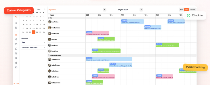 SpotBooker is a streamlined resource and meeting room booking platform designed to help organizations manage shared spaces such as meeting rooms, desks, parking spots, and company vehicles from a single intuitive interface. It eliminates scheduling conflicts and unused resources through real-time availability tracking, interactive maps, and color-coded calendars that make it easy to reserve, modify, and organize spaces. Users can share booking access through QR codes or direct links, while automated check-in and check-out features confirm attendance and help free up unused spots to maximize utilization. It also supports user segmentation, custom categories, and approval workflows so administrators can enforce booking rules and tailor access by team or role. Automated reminders reduce no-shows, and public booking pages allow external visitors to reserve resources without creating accounts.
