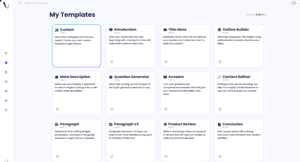 Use our ready-made templates to quickly create content for your website, blog, or social media platforms. Customize and create your own templates to fit your specific content needs. Create an unlimited number of projects and documents with Kopify and access them anytime, anywhere. Write and edit long-form documents with multiple sections, including titles, headings, links, images, and text. Easily export content to WordPress with our one-click export feature for hassle-free publishing. Easily export content to WordPress with our one-click export feature for hassle-free publishing. Kopify offers 10+ pre-made templates for quickly creating content for your website, blog, or social media accounts. These templates are designed to write SEO-friendly content and can be customized to fit your specific needs. Additionally, you can create your own templates with our custom template builder. With our Semantic SEO optimization tools included too, your content is sure to be seen by search engines.