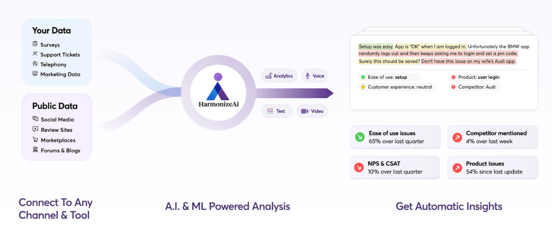 The volume, velocity, and variety of consumer data available to every company have made it possible to deeply understand consumer wants and needs. Yet, too often, teams build products and experiences on the basis of best guesses, legacy consumer behavior, and outdated insights. This creates business risk as dissatisfied customers churn, innovation stagnates, and growth & innovation grind to a halt. Any product or experience that no longer meets the consumers' rapidly changing needs is discarded. Understand the customer experience across every channel with real-time feedback from over 120+ sources and integrations feeding into one platform, providing you with a complete view of what your customers and consumers are thinking, feeling, and buying. Prioritize your roadmap confidently based on consumer wants and needs. Transform customer experience into customer loyalty and reduce churn. Reshape your campaigns based on real-time consumer feedback.