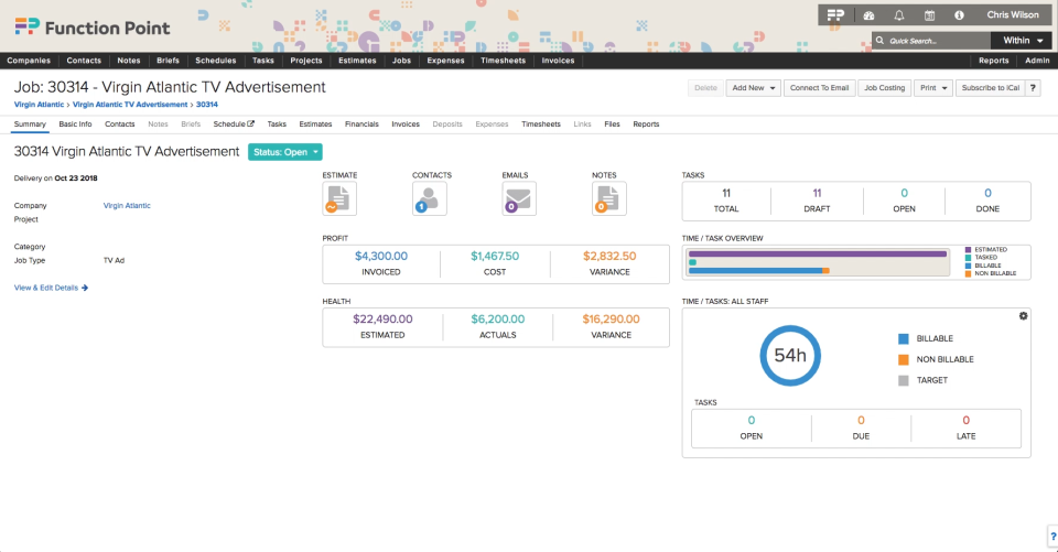 Function Point is an all-in-one project management software for creative agencies and in-house marketing departments looking to streamline their business. Manage your projects, staff resources, track time, create estimates & invoices, and integrate with Quickbooks all in one cloud-based system. Our solution helps agencies improve their productivity and profitability by streamlining processes; simplifying collaboration; centralizing information; and delivering real-time business data.