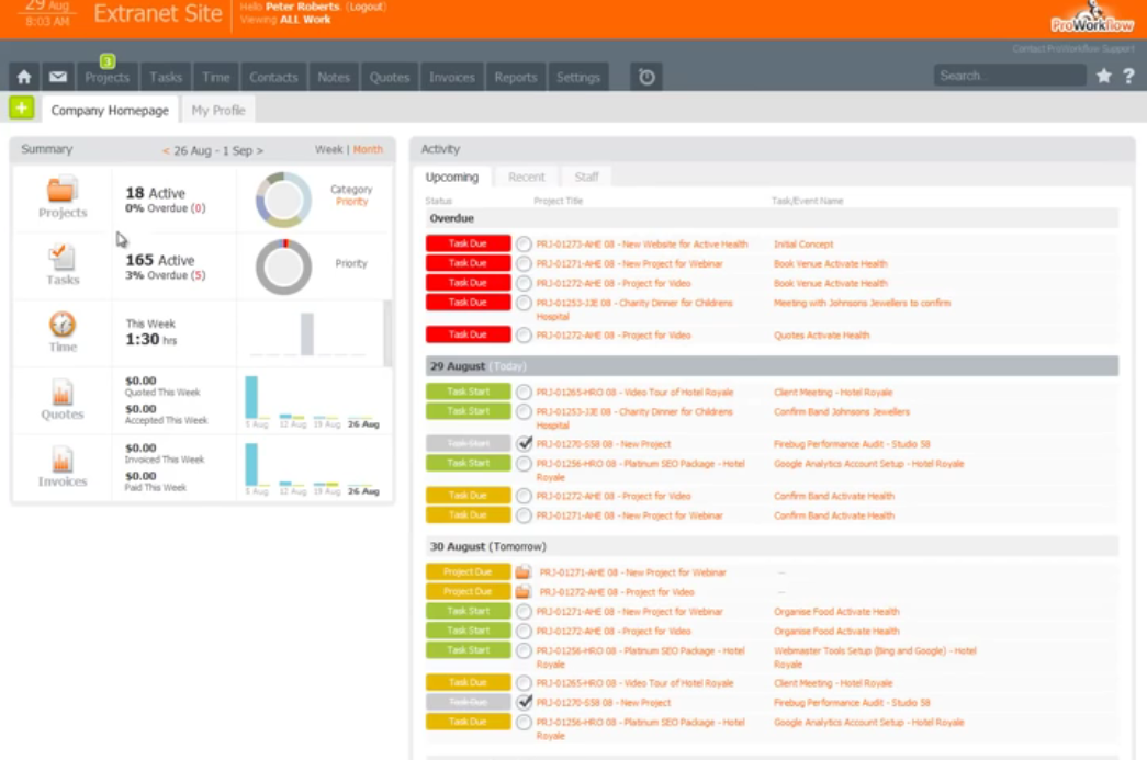 If you're looking to manage your projects and teams with ease, turn to ProWorkflow. A web-based project management software for freelancers, startups, and enterprises, ProWorkflow comes with a range of powerful tools to help users get the job done. ProWorkflow offers features for assigning tasks, tracking time, or rescheduling projects. It also offers easy quoting and invoicing tools.