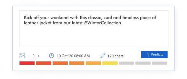 Write better posts and generate more engagement using AI. Know which post to publish with the engagement indicator. Overcome writer's block with endless AI-generated caption ideas. Predis.ai's proprietary algorithms recommend hashtags, caption ideas and suggestions to improve your post. Incorporate these changes to enhance your engagement and grow organically! Our proprietary AI algorithms predict the performance of the posts even before you publish. We can also tell you the right time to post, what media to use, how many users to tag. Interesting isn’t it? Having writer's block? We get it. We throw a lot of content ideas at you to keep you going. Additionally, our algorithms also suggest hashtags relevant to your post. Couple of clicks and understand what is working for your competition. No more time taking competitor analysis. Once our advanced NLP algorithms have worked their magic, start writing better posts.