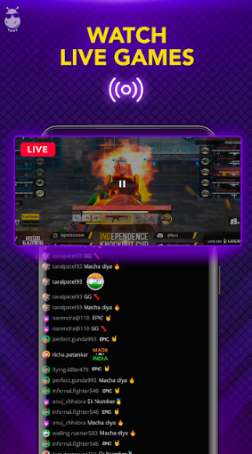 On Loco, you can watch India's best upcoming and top gamers live playing top games. You can follow, support, and engage with them. You can also become a streamer on Loco and live stream games to build your own gaming community. You can also play free multiplayer games like Ludo, Carrom, Pool, and Bull Bash with your friends and talk to them directly in the app. Watch live game streams played by some of the best gamers of India. Catch all the Live gaming action made by Indian gamers for the Indian gaming community. You can also watch the best skills, game tutorials, highlights, and other game videos of top all your favourite mobile and PC games. Watch top gamers live on mobile, PC, Playstation as well as Xbox on India’s favourite game streaming platform. You can watch live video games in HD, share videos and chat with members of the gaming community watching the video. You can watch a game live anytime during the day on your mobile phone.