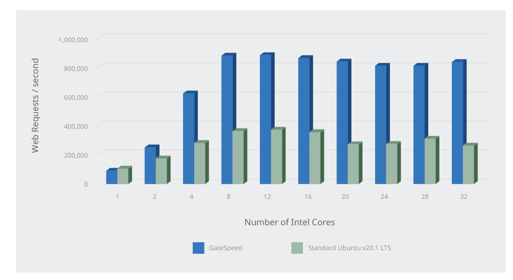 Dramatic increases in demand for bi-directional content, robust data, and efficient processing, have significantly hampered network throughput performance, worsening traffic at critical choke points across data networks. GateSpeed’s unique network optimization platform drives data throughput and hardware efficiency improvements at these choke points, with performance benefits and cost savings that hit the bottom line. Whether deployed at the network edge, on network links and load balancers, or directly at the data center, GateSpeed technology offers single-point or end-to-end optimization for integration into your long-term network infrastructure and development strategy. With our innovative packet-forwarding engine, and customized Data Plane Development Kit (DPDK), GateSpeed achieves 5X and greater packet throughput over standard Linux deployments, and substantially greater throughput than standard DPDK solutions on the market today.