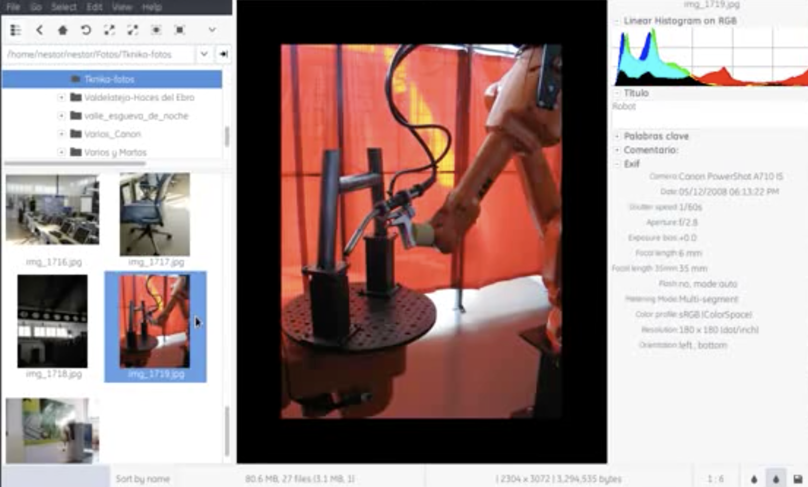 Comments and Exif information browsing and editing. Supported Metadata formats Exif, IPTC and XMP. Fast preview for many raw image formats and many other supported. Geeqie has great defaults but also offers lots of customization options. Check Preferences menu. Easy integration with other software: open images with your favourite editor.