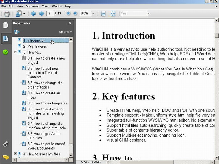 WinCHM is a very easy-to-use and powerful help authoring tool. Not needing to learn hard, you can be master of creating professional and good looking HTML help(CHM), Web help, PDF manual and Word documents. With this powerful tool you can not only create chm file from scratch, but also convert a set of existing HTML files to a chm file. You can open an existing chm file and edit the chm file too. create chm file too. Template support, make uniform style html help file very easily. Full-function web help creation. (Contents, Index, Search and Bookmark). Integrated full-function WYSIWYG html editor. No external word processor needed. Edit CHM files, and convert a set of HTML file into a CHM file. Super table of contents hierarchy editor. Supports multi-select moving, changing icons, and Visual CHM designer. WinCHM Pro is an easy-to-use help authoring tool. You can use it without leaning too much.