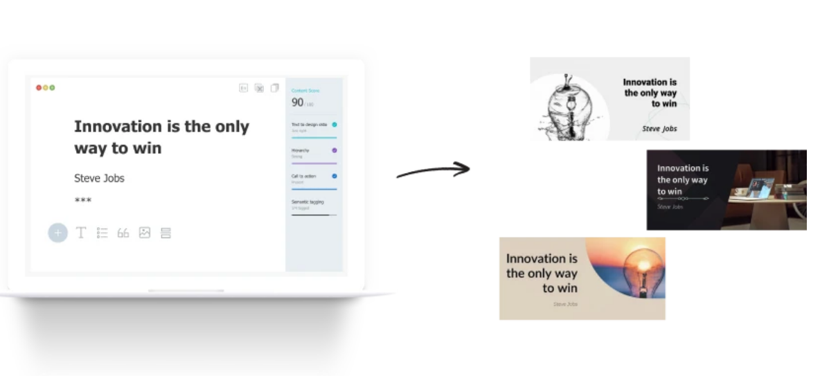 Turn your text into visual content instantly with Sivi. Using artificial intelligence, you can auto-generate editable banners, social posts, google display ads, and more from your story, webpage, article, etc. Generate branded graphic designs 10x faster with AI. Sivi follows the human design process and generates multiple variations instantly. Get designs in over one hundred global languages. Auto-generates in multiple styles and variations. ChatGPT is for text, Midjourney is for images, and Sivi AI is for visual designs. Unlike text-to-template tools, Sivi AI does true composition to generate stunning visuals. Midjourney, Dall-E, and Stable Diffusion specialize in image generation, while Sivi focuses on design generation that brings together text, graphics, images, brand colors, and logos.