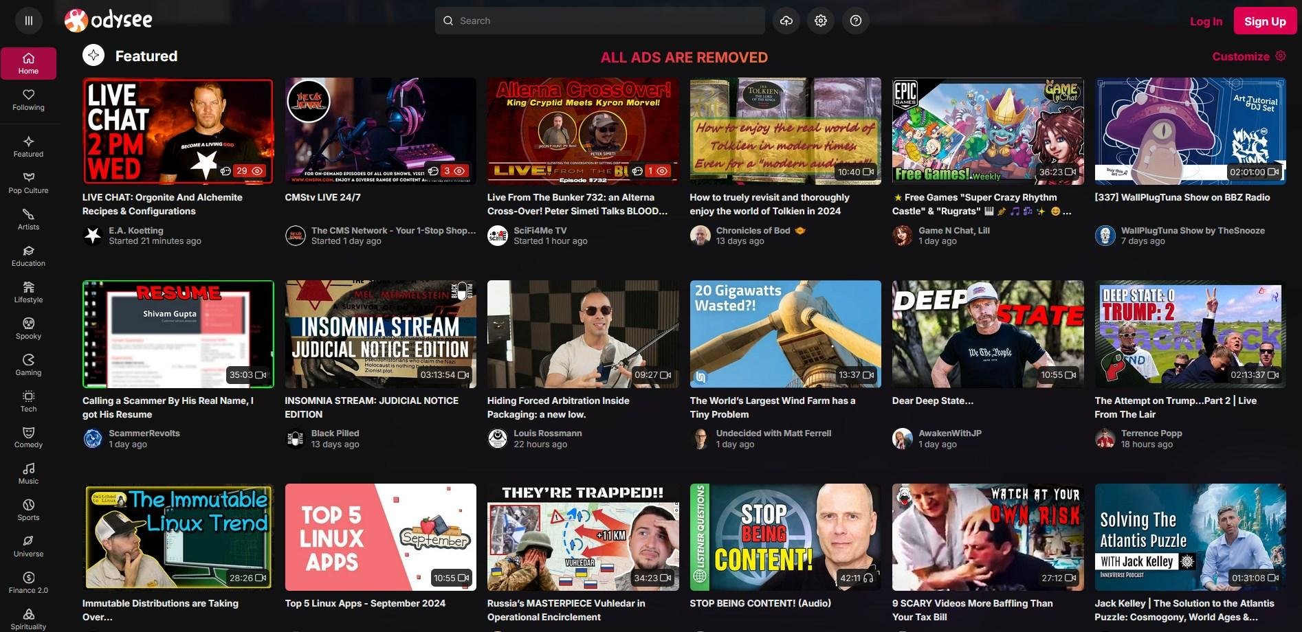 Odysee seeks to recapture the Internet spirit of the 2000s. Instead of favoring corporate content, such as late-night talk shows, broadcast television, and TV news, Odysee is a place for everyone, including independent creators.