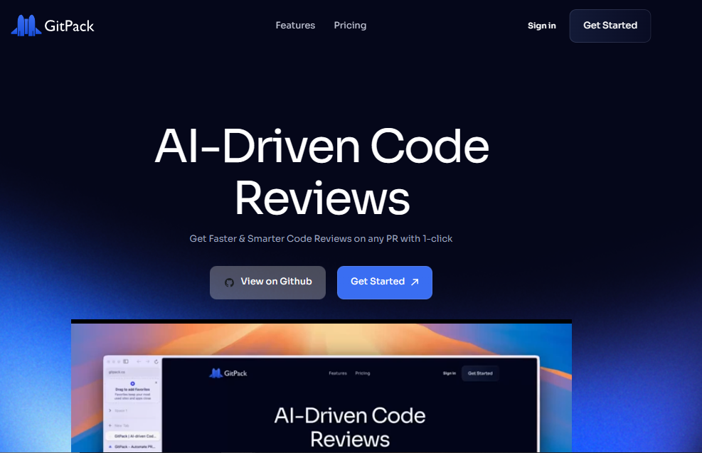 GitPack AI is an AI-driven code review tool that integrates seamlessly with GitHub repositories, providing automated, context-aware feedback on pull requests. Once installed via a one-click process from the GitHub Marketplace, it operates in the background, reviewing code changes as they are submitted. It leverages OpenAI's GPT-4o model to deliver line-by-line code analysis, offering smart, tailored testing suggestions specific to each project. This approach helps maintain coding standards, catch bugs early, and improve overall code health across development teams. GitPack AI requires no setup and is designed to scale with your team's needs, supporting unlimited public and private repositories. It aims to automate routine code reviews, allowing developers to focus on writing new features rather than manual checks.