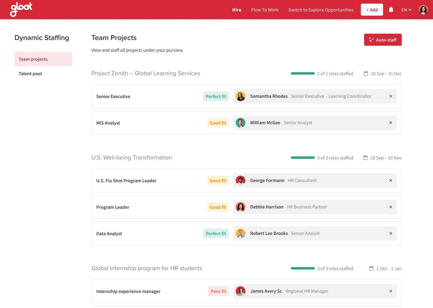 Gloat enables enterprises to harness the hidden potential of talent throughout the organization by matching people to internal career opportunities that are right for them, and provides mission-critical organizational agility, visibility, and insights.
