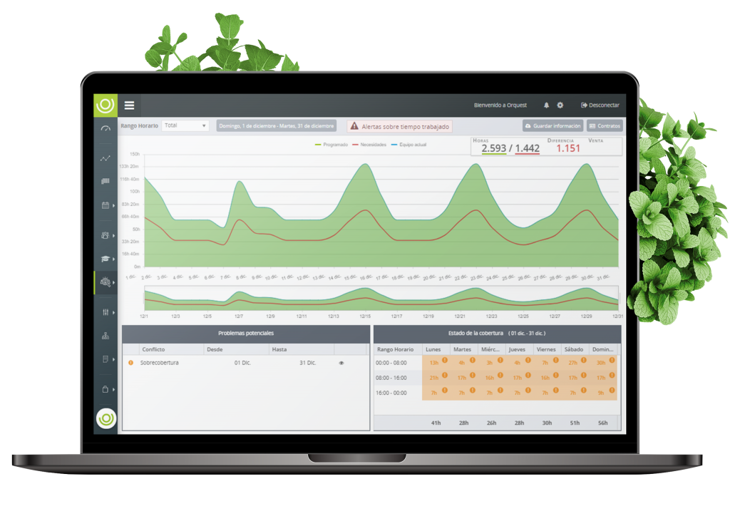 Sell more by scheduling better. Optimize staff scheduling and management in your establishment thanks to artificial intelligence and achieve better results. Increase your sales and profit through our Workforce Management software thanks to Artificial Intelligence. ORQUEST is a Workforce Management Scheduling Software based on cutting edge algorithms, Advanced Analysis and Artificial Intelligence, designed specifically for the retail and fast Food industry. We are ready for the new now. We are working hard to respond quickly and accurately to the changing market reality. We adjusted our algorithms, helping easing the current problems you are facing. We are proud to offer you solutions to: (Un) Predictable Demand. We adjusted our forecast to the new reality and it continues being the most accurate available. Employee Social Distancing We schedule taking in consideration the current security measures and facilitating the best performance and benefit.