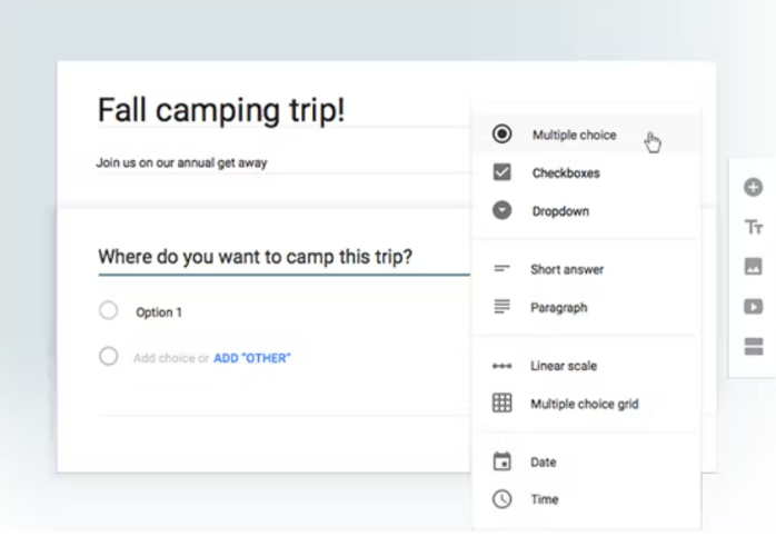 Collect and organize information big and small with Google Forms. For free. Plan your next camping trip, manage event registrations, whip up a quick poll, collect email addresses for a newsletter, create a pop quiz, and much more. Use your own photo or logo, and Forms will pick just the right colors to complete your own unique form, or choose from a set of curated themes to set the tone. Choose from a bunch of question options, from multiple choice to dropdowns to a linear scale. Add images and YouTube videos, or get fancy with page branching and question skip logic. Forms is responsive, so that means it’s easy (and beautiful) to make, edit, and respond to forms on screens big and small. Responses to your surveys are neatly and automatically collected in Forms, with real time response info and charts. Or, take your data further by viewing it all in Sheets.