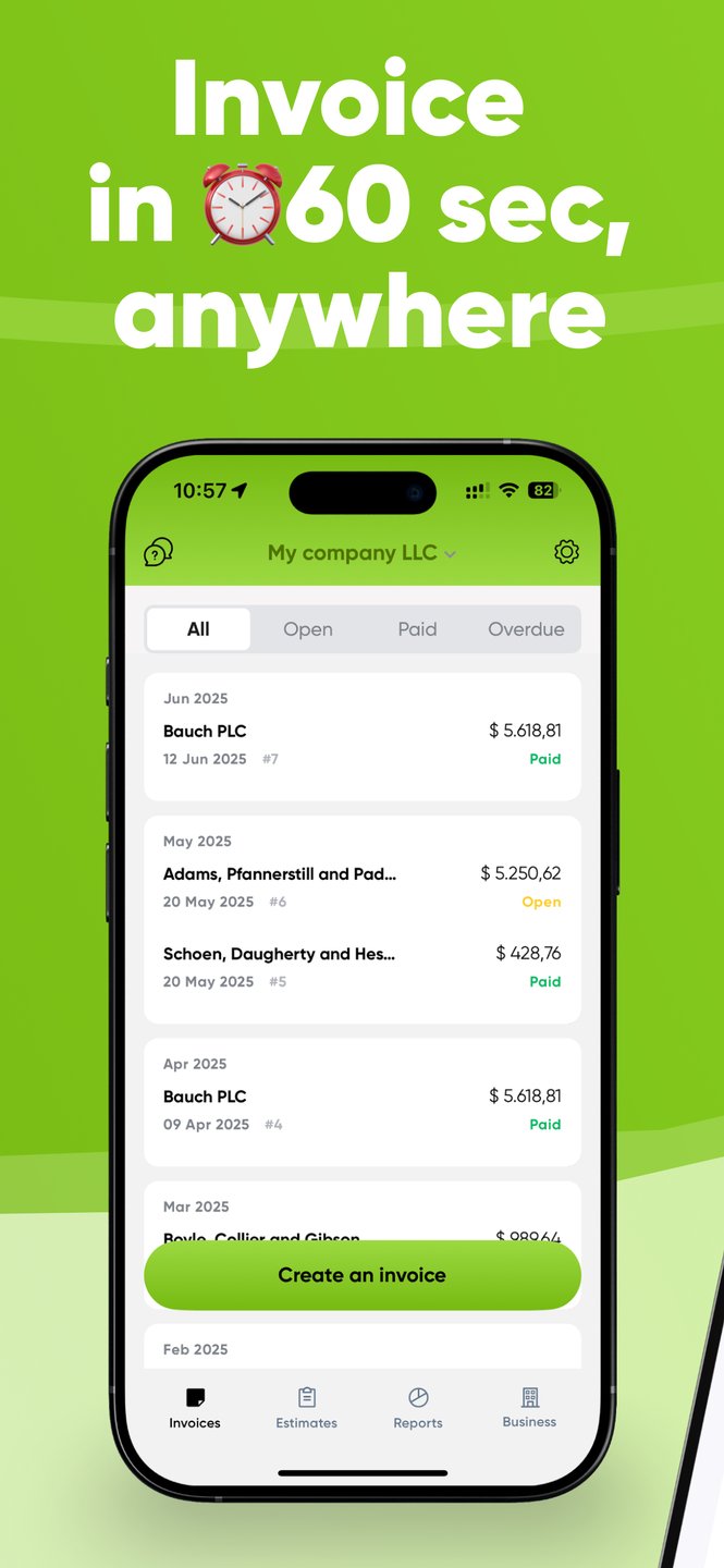 Unlimited companies can live under one account, so side gigs and multiple DBAs stay neatly separated while feeding a single, real-time payment dashboard. Item and client libraries speed up repeat work, automated reminders reduce late payments, and offline draft mode lets you finish paperwork even when the signal drops.