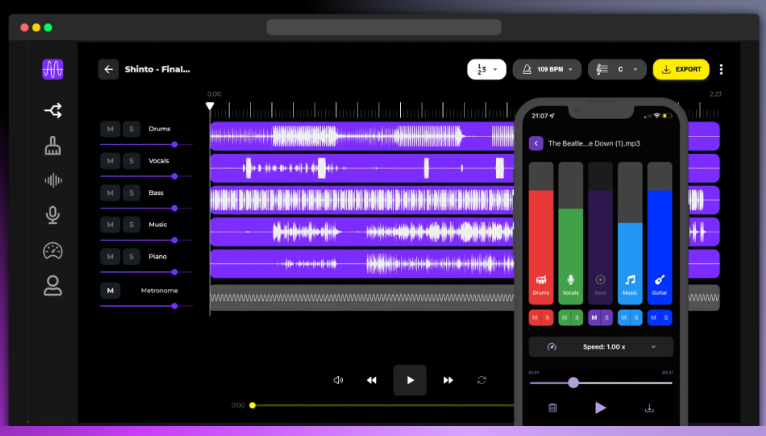 Musicians, content creators, and producers looking for an AI tool to separate audio tracks, remove vocals, reduce noise, and master their music