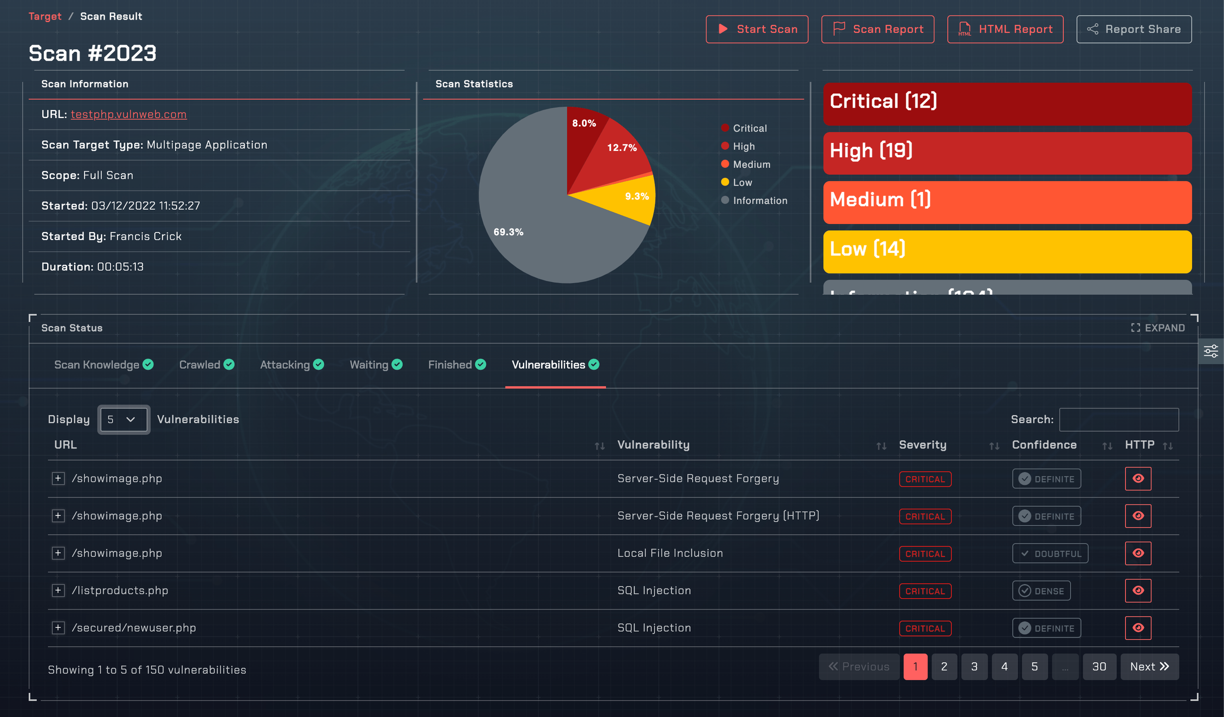 VulnSign is an online vulnerability scanner that is fully automated, customer-orient configurable and has advanced features. VulnSign can scan any type of web application, regardless of the technology it was built with. It uses a Chrome based crawling engine and can identify vulnerabilities in legacy, and custom built, modern HTML5, Web 2.0 applications and Single Page Applications (SPA). It also has vulnerability checks for popular frameworks. The VulnSign vulnerability scanner is very easy to use and most of the pre-scan configuration can be automated. It is an all in one vulnerability management solution, with multi user support and integration capabilities. Though to test it all you need to do is specify the URL and credentials (to scan password protected websites), and launch a vulnerability scan.