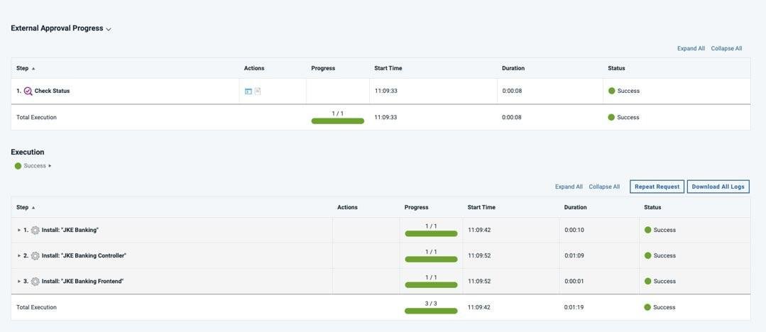 Automated, consistent deployments and rollbacks of applications. Integrate with build and test tools to automatically deploy, test, and promote new builds. Go beyond automated deployment alone, and incorporate repeatability, predictability, auditability, traceability into your delivery pipeline.