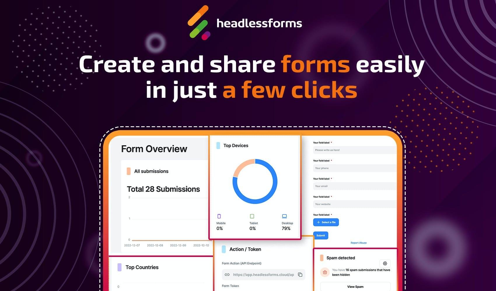 Headlessforms provides a simple and intuitive form solution that is powerful and comprehensive, offering an array of features to construct and customize your forms with speed and ease. Customize your notifications and email templates to reflect your brand identity. Then, let Headlessforms send them to respondents automatically. It’s form submission magic for your business. We validate your data server-side and use machine learning in order to protect you from spam. In addition, we offer easy-to-integrate HoneyPot Fields, to make sure we stop bots at the beginning. With our intelligent direct integrations, we will get your data to where it needs to go. Make form data analysis a seamless process with Headlessforms. Headlessforms gives you one of the most unique, cutting-edge form tools available. With its intuitive technology, its capability far exceeds all other online form builders on the market today. Consider it your ultimate form submission partner.