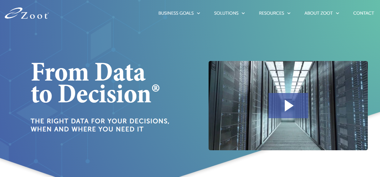 Click, drag and drop your way to improved efficiency. Reduce human effort and increase speed for any process at your organization. Enjoy one of the most robust portfolios of data connections available. Take advantage of more than 70 connected brands and hundreds of products to inform your decisions. Operate in the purpose-built Zoot private cloud without having to operate and manage your own data centers. Enjoy the most secure, reliable, live environment for your decision and data requirements. When your business scales, you need partners who can keep up. Zoot will be there with you, proven by more than three decades of reliability, supporting some of the largest organizations in the world. Zoot is a global provider of advanced decision management and data acquisition solutions for organizations worldwide. Zoot provides advanced origination, acquisition and decision management solutions for some of the largest organizations in the world.