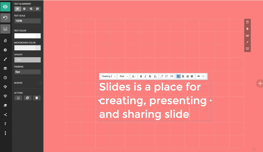 Slides is a suite of modern presentation tools, available right from your browser. Unlike traditional presentation software, there's no need to download anything. Working with collaborators to make an awe-inspiring presentation has never been easier. In a meeting, conference call or on stage? With Live Present Mode, you control what your viewers see. You can even use your phone as a remote control with direct access to your speaker notes. Slides is used daily by professionals all over the world to speak at conferences, share pitches, school work, portfolios and so much more. Join today and try it out for free. Guide your audience through presentations with freehand annotation. Drawings broadcast to your audience in realtime.