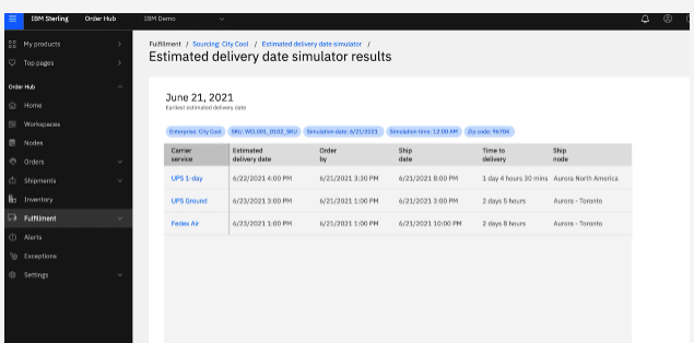 IBM Sterling Intelligent Promising is a modular, AI-powered platform designed to enhance omnichannel retail performance by delivering accurate, transparent, and cost-effective order fulfillment experiences. The Promising service provides personalized delivery estimates by evaluating multiple fulfillment options in milliseconds, enabling retailers to present precise promise dates across product listing pages, product detail pages, and checkout, thereby increasing digital conversions and reducing cart abandonment. The Inventory Visibility service delivers real-time, enterprise-wide inventory insights, allowing businesses to meet peak-period demands, optimize safety stock, and avoid over-promising and lost sales. The Optimization service employs advanced algorithms to balance predefined business rules with real cost drivers, such as shipping and processing costs, to make the best fulfillment decisions.