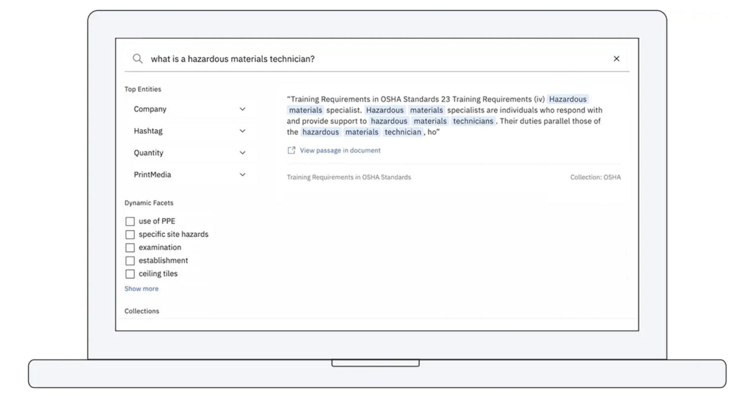 Find specific answers and trends from documents and websites using search powered by AI. Watson Discovery is AI-powered search and text-analytics that uses innovative, market-leading natural language processing to understand your industry’s unique language. It finds answers in your content fast and uncovers meaningful business insights from your documents, webpages and big data, cutting research time by more than 75%. Semantic search is much more than keyword search. Unlike traditional search engines, when you ask a question, Watson Discovery adds context to the answer. It quickly combs through content in your connected data sources, pinpoints the most relevant passage and provides the source documents or webpage. A next-level search experience with natural language processing that makes all necessary information easily accessible. Use machine learning to visually label text, tables and images, while surfacing the most relevant results.