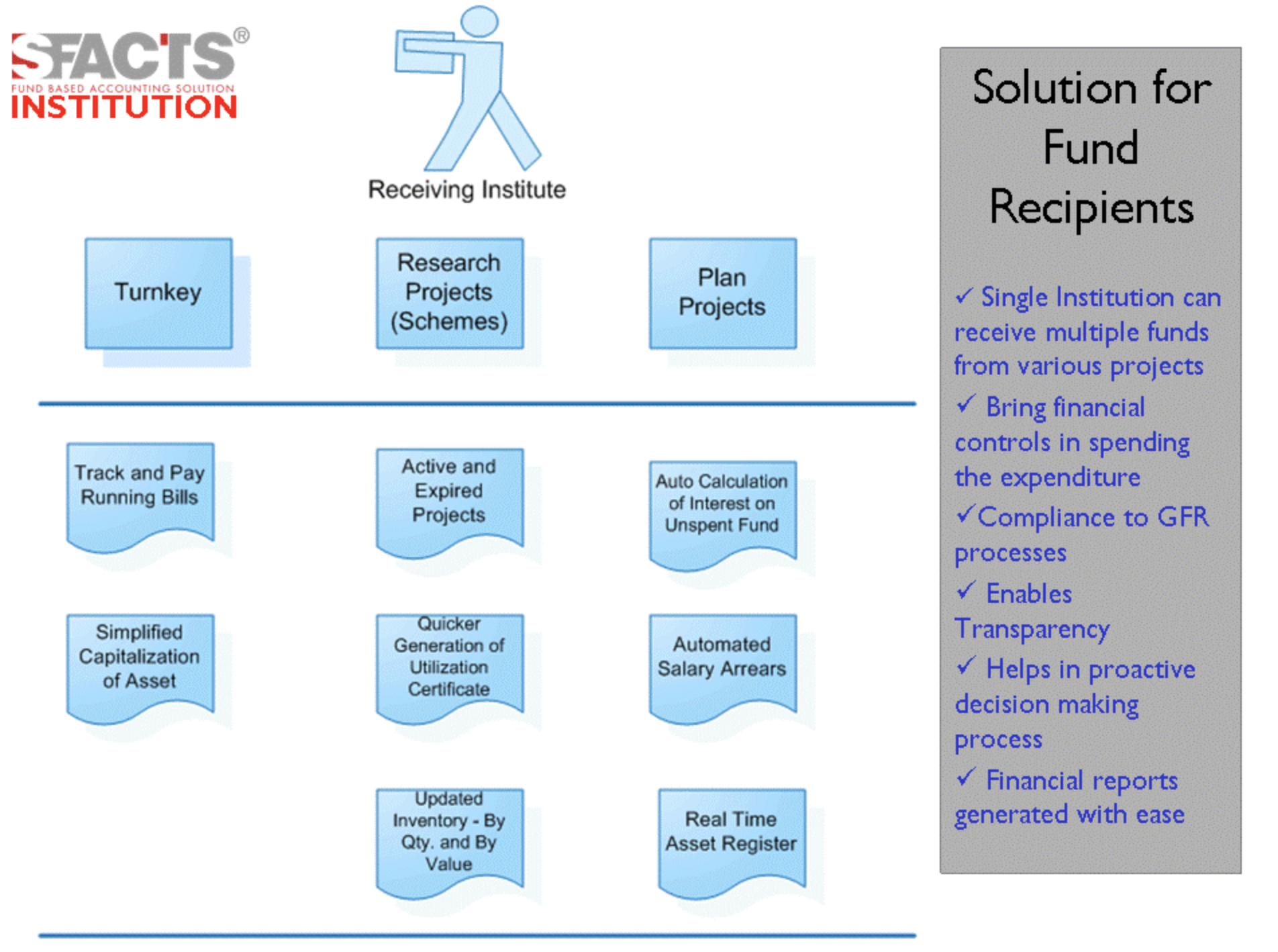 The SFACTS is a seamless comprehensive software solution in the eGovernance space which is designed to meet the restricted and unrestricted grant accounting requirements. Our application can effectively manage the Research Grant processes; Plan & Non-Plan fund management with GFR compliances. SFACTS is a fully integrated ERP system with rich features designed exclusively for managing the specific requirements of Research and Development Institutions. The comprehensive functionality of SFACTS has a unique implementation and support approach will deliver a superior value. Optimize user experience through proactive support and maintenance. Cross-Platform with other technological tools for effective adoption. Opportunity for continuous improvement and decision.