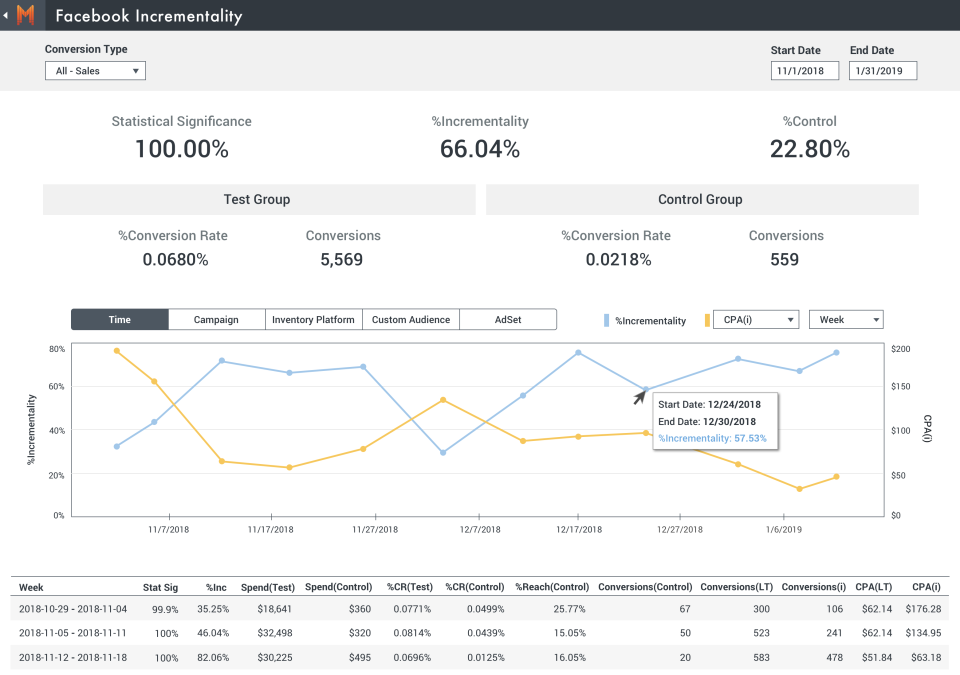 Measured provides marketing attribution & cross-channel view across all media channels, PLUS media incrementality testing. Turn on 100+ audience level experiments across Google, Facebook and on 70+ integrated media platforms. Identify Media Waste, Test for Scale. Capture up to 30% marketing efficiency. Powered by incrementality measurement.