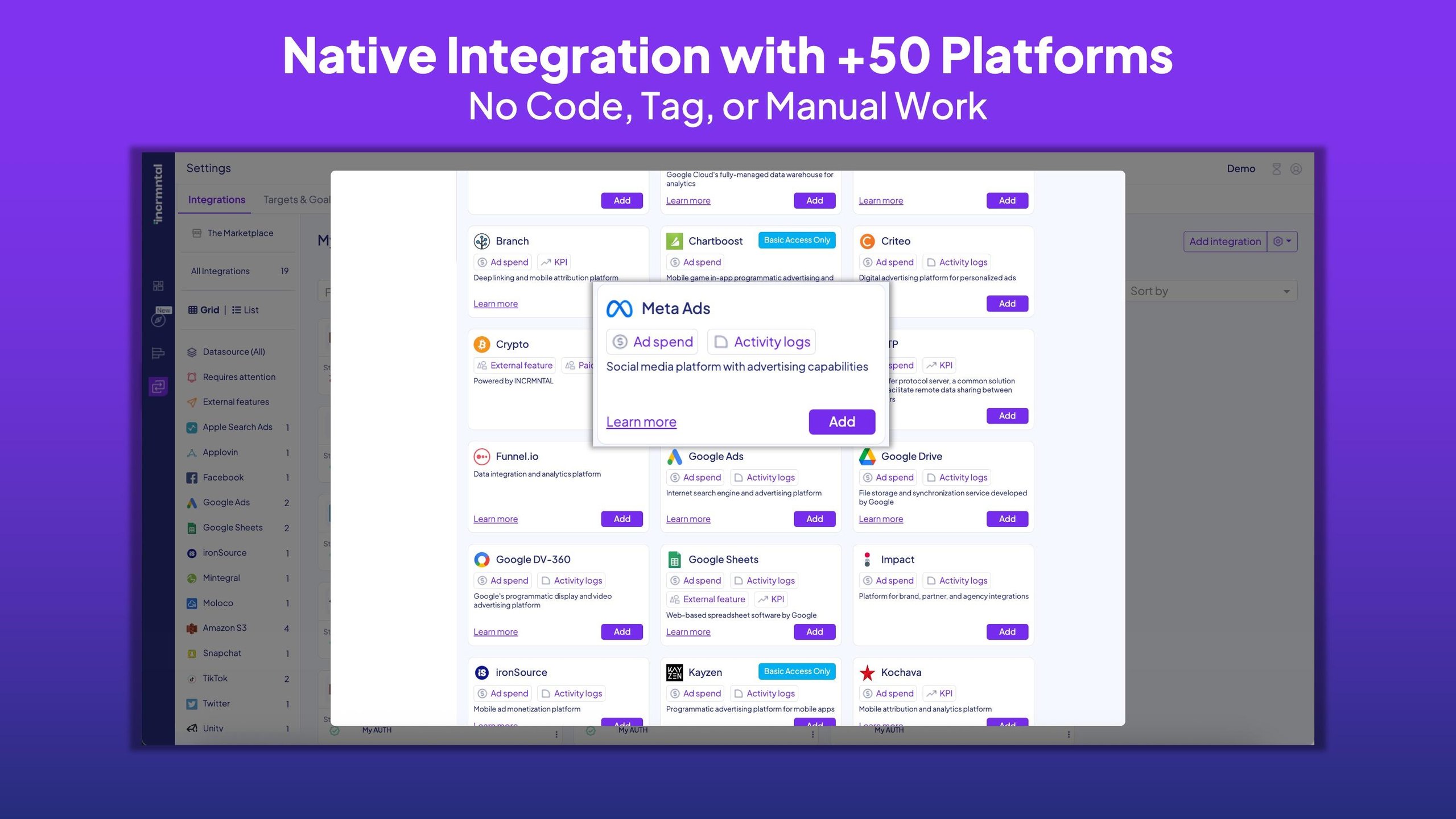 INCRMNTAL is an always-on incrementality measurement platform that reveals the true impact of your ad spend - without cookies, device IDs, or planned experiments. Powered by causal AI and reinforcement learning, INCRMNTAL analyzes marketing performance across Mobile, Web, TV & CTV, Influencers, OOH & DOOH, Audio, and Podcasts to answer the question every marketer should be asking: "What would have happened if I hadn't spent that money?" The platform delivers actionable, privacy-first insights continuously - no control groups, no holdouts, no waiting. Just real incrementality data that helps Advertisers optimize budgets, cut waste, and prove the value of every dollar spent.