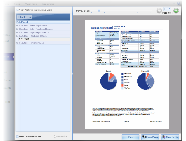 The Retirement Analysis Kit (TRAK) is innovative retirement software with a proven track record of helping advisors engage and motivate people towards retirement readiness. Answer the important questions your clients have about retirement. Engage participants with a personalized education that motivates participants to take action. Provide comprehensive one-on-one retirement planning. Calculate pension benefits, survivor options, and pension maximization. Illustrate 403(b) and 457 plan savings strategies as part of a holistic retirement plan. All-inclusive federal benefits calculations including FERS, CSRS, CSRS offset. Also includes TSP, FEGLI integration, and Federal long-term care. TRAK helps you work in your clients’ best interests by providing understandable and transparent answers and analyses for common retirement strategies. TRAK software helps advisors motivate their clients and engage their participants with solutions that simplify retirement planning.