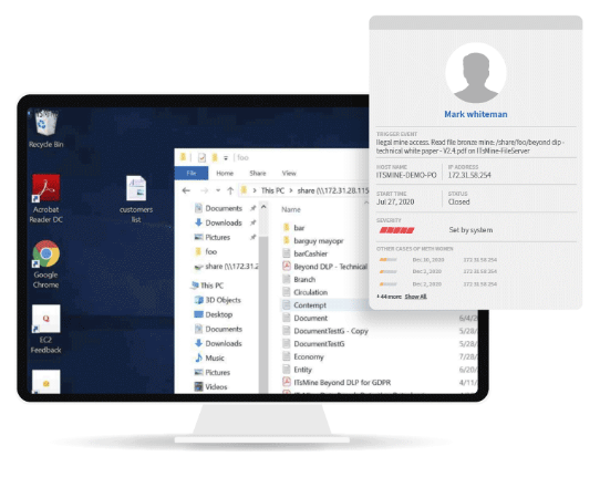 ITsMine Beyond DLP™ goes beyond traditional Data Loss Prevention (DLP) to protect organizations against all data threats. No policies or endpoint agents needed zero effect on employee productivity, and protection even after data exfiltration. Data loss incidents are becoming more common and more destructive than ever before, whether deliberate or inadvertent or from internal or external factors. Beyond DLP™ is a completely new security approach, that enables organizations to easily track and secure their data wherever it is, within their internal network and beyond. Maintain your high-security standards regardless of whether your data is located in on-prem or cloud-based file systems. Empower employees’ full productivity while controlling the usage and whereabouts of your sensitive data. Hassle-free compliance to data protection regulations, from GDPR, CCPA, PCI to HIPAA, with access control options to sensitive data, data breach detection and clear reporting options.